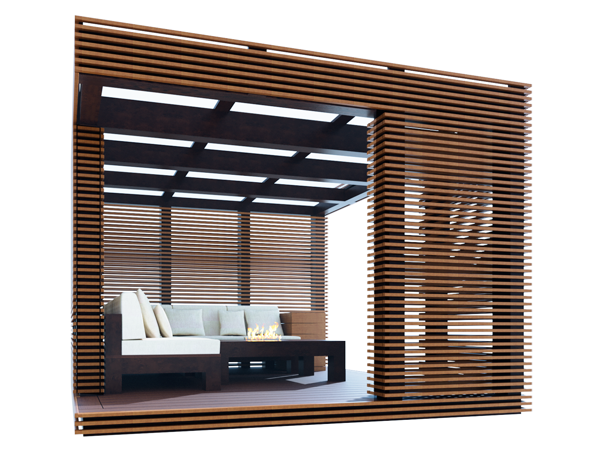 - Lamelsektioner med fibercement på bagsiden, for afskærmning for vind eller wiew. Muligt tilkøb til alle Lounge modeller
