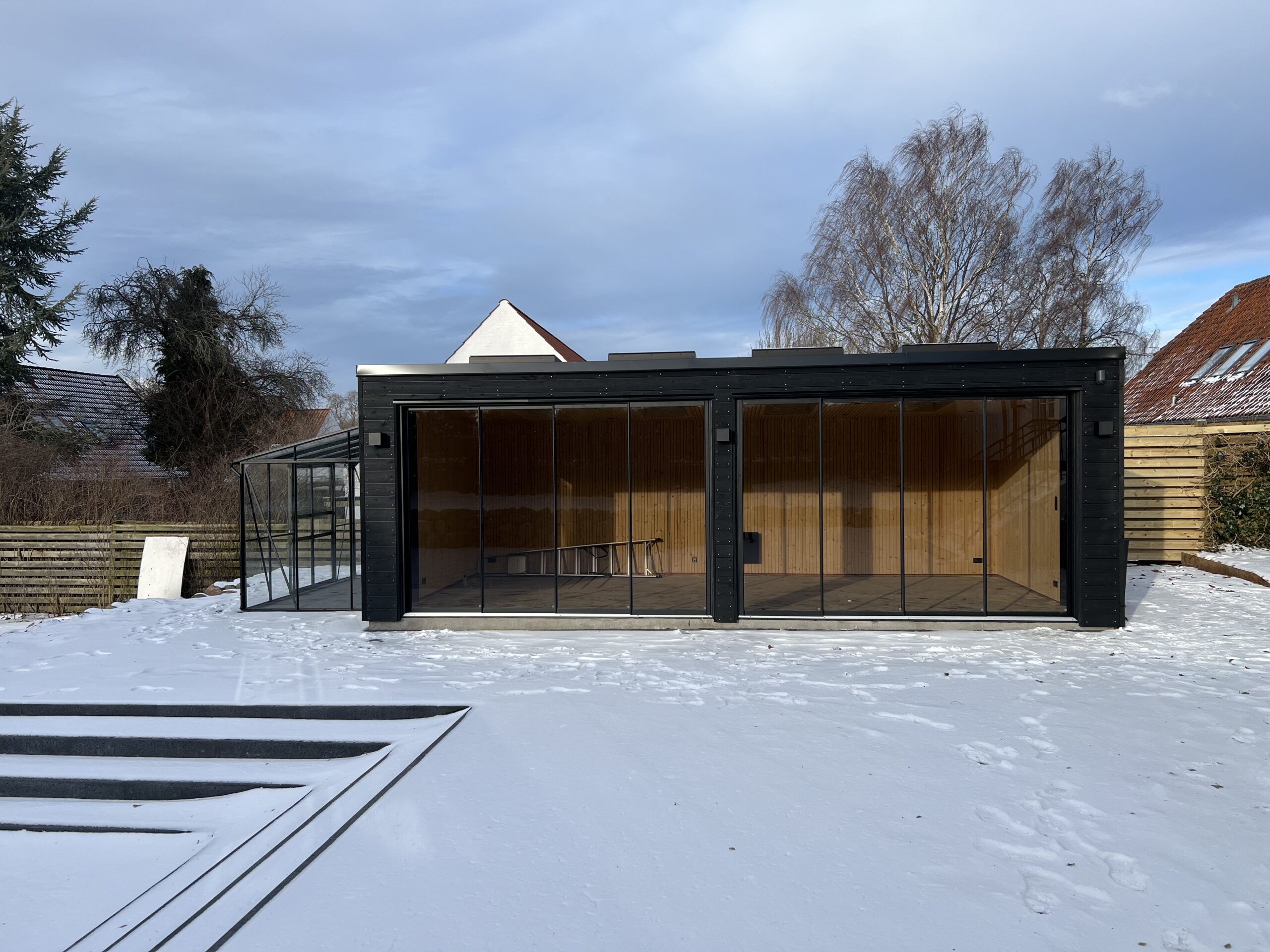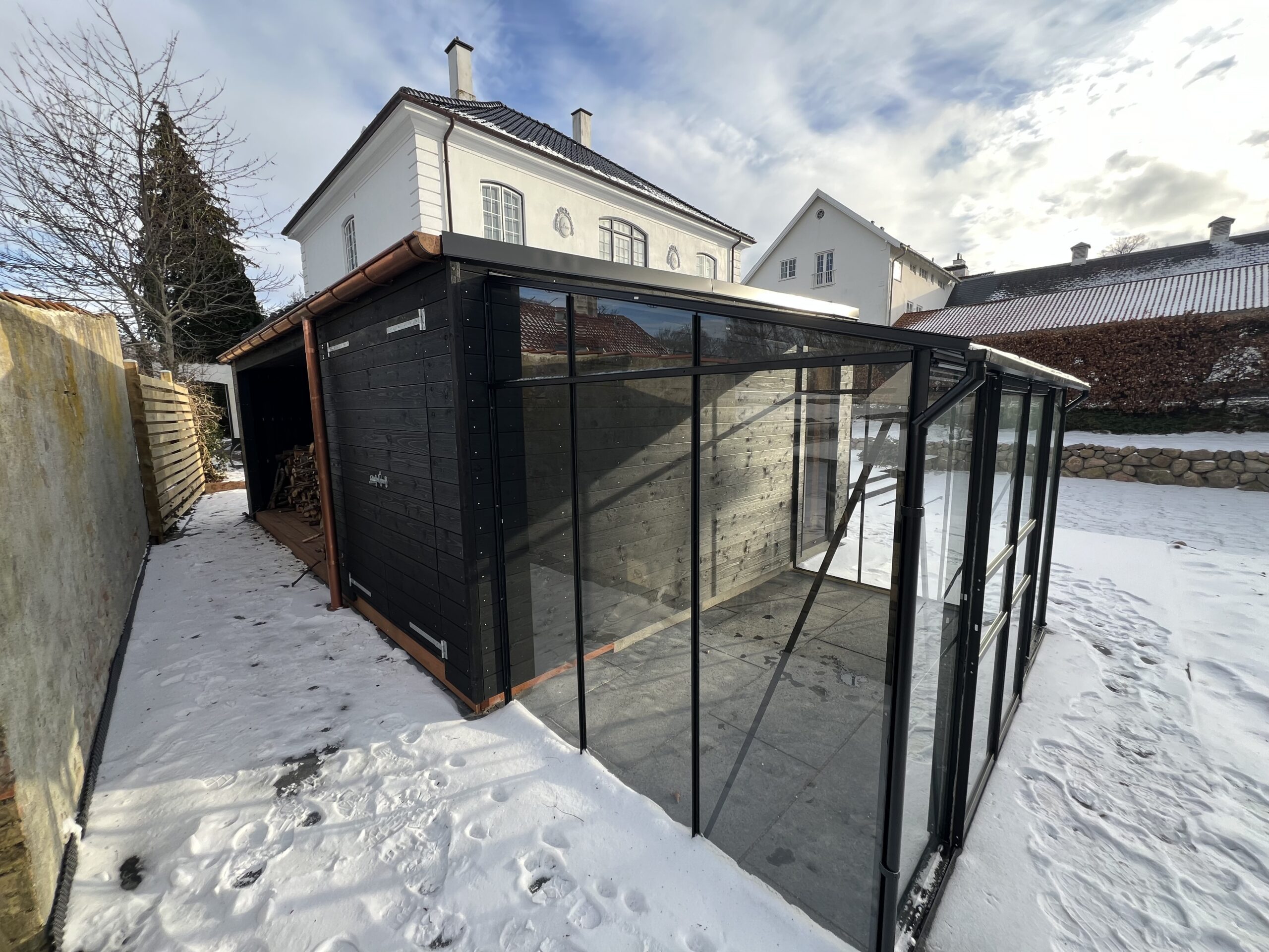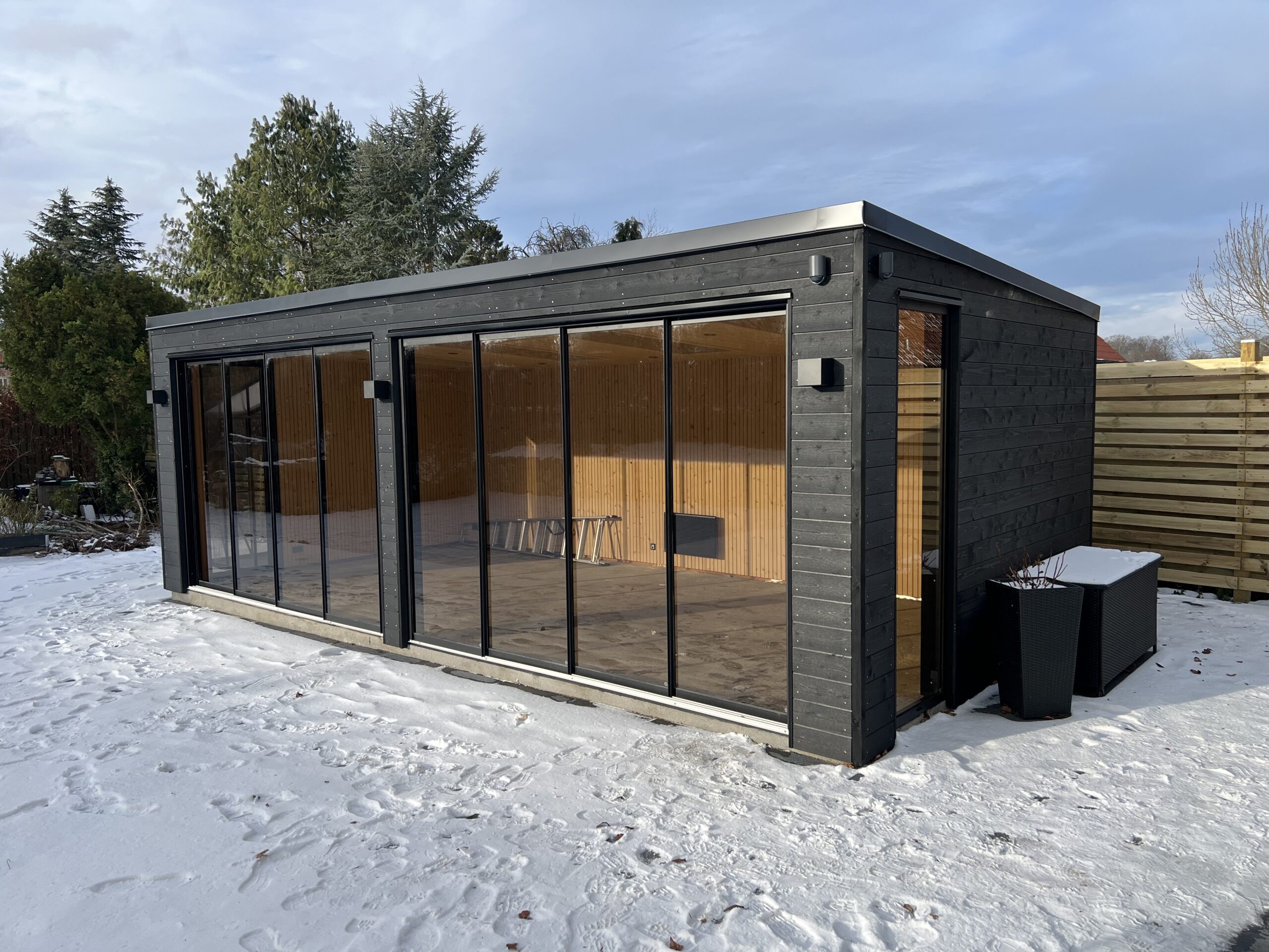 - Lamelsektioner med fibercement på bagsiden, for afskærmning for vind eller wiew. Muligt tilkøb til alle Lounge modeller